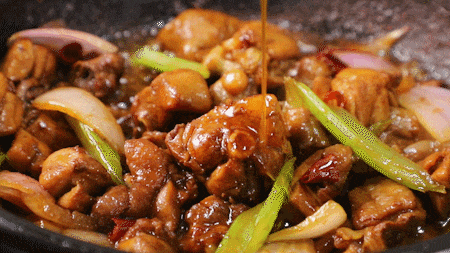 所谓快餐鸡公煲,说白了,就是把提前腌制好的鸡肉,还有食客选的配菜,配以秘制酱汁和川料,用特制的铁锅爆炒,高温瞬间将食材表面烹熟,并快速锁住鸡肉水分,口感嫩滑,麻辣鲜香。