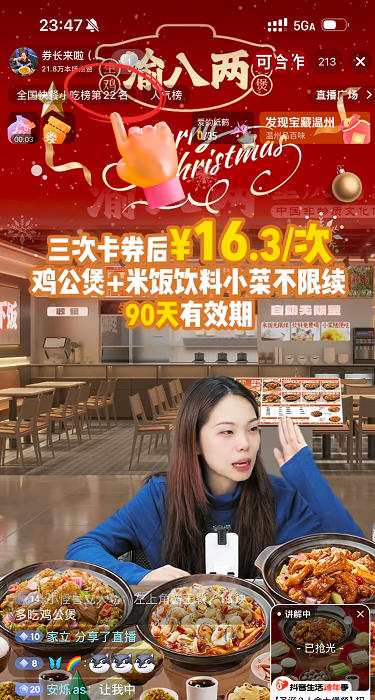 寒冷的12月,谁能拒绝一份热腾腾、香气扑鼻的快餐鸡公煲?2025年12月23日,渝八两重庆鸡公煲第二次抖音团购直播重磅收官,用爆棚人气与亮眼战绩,为这个寒冬注入滚烫活力——不仅掀起全民囤券热潮,更一举冲入全国快餐小吃榜第22名,直播间成交30万,用实力续写品牌增长神话,为全国加盟商送上最实在的旺季“红利”!